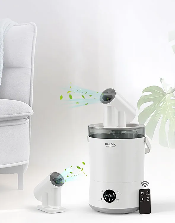 • کنترل لمسی دستگاه به همراه نمایشگر فعال، تنظیم زمان، شدت بخور و رطوبت محیط